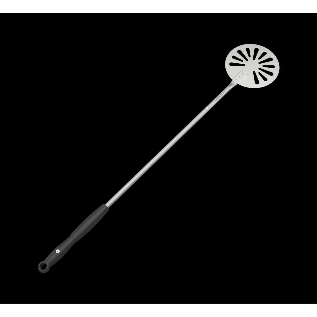 Designed for use in a variety of oven sizes, the Gozney Turning Peel is perfect for repositioning food in your Dome. After using the Gozney Pizza Peel to place fresh pizza inside your oven, the Gozney Turning Peel makes sliding and turning pizza easy to do whilst cooking, reducing the risk of burn or damage from high temperatures. Incorporating a slimline and circular stainless steel surface, with a weighted handle that can be grasped with both hands, the peel fits easily under a partially cooked dough base, giving the user maximum control over the peel and food in the oven. 6.7″ head diameter, 34.6″ handle. AD1581