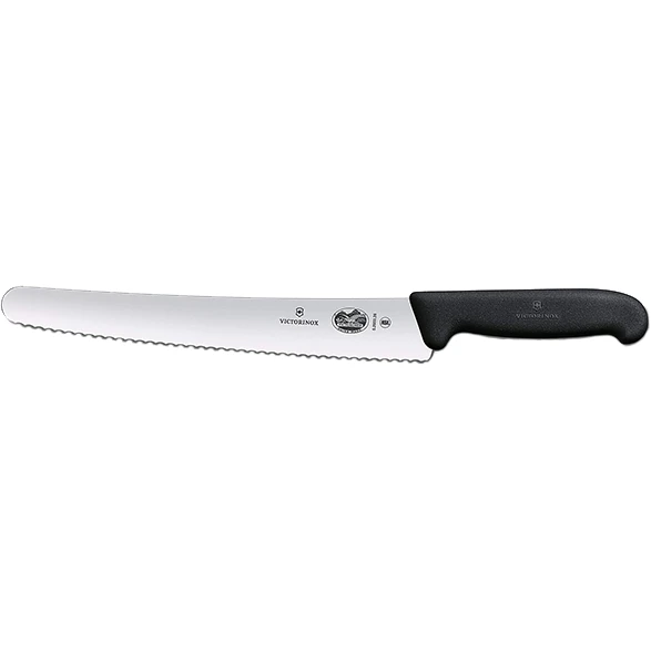This Victorinox 10-1/4″ serrated bread knife features a Fibrox handle, for no-slip security and sure-handed cutting, shift after shift. Crafted from high-carbon stainless steel, it won’t discolor or corrode over time.